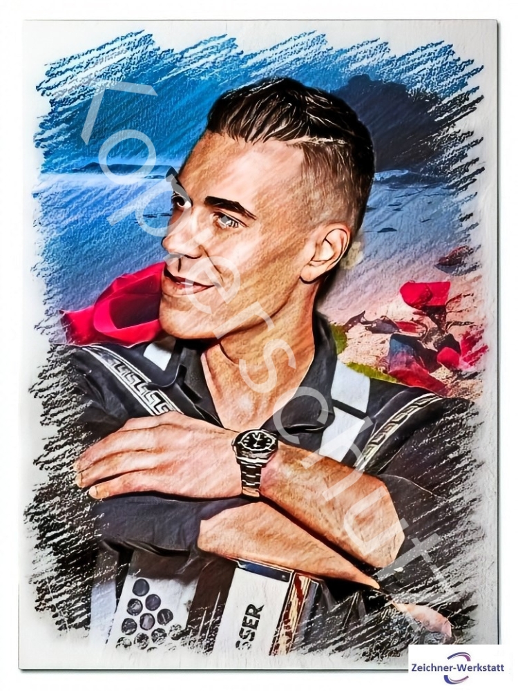 Tauchen Sie ein in die Welt der Film- und Fernsehstars mit diesem exklusiven Set Drucken der beliebten Sängerinnen und Sänger . Jedes Stück kommt direkt aus Deutschland und trägt die unverkennbare Handschrift des Zeichners Thomas Schulze, sorgfältig aufgedruckt auf hochwertigem Fotopapier. Dieses Sammlerstück ist ein Muss für jeden Fan und wurde persönlich in der Zeichner-Werkstatt von Thomas Schulze Gestaltet, was es zu einem echten Original macht. Ideal für Liebhaber deutscher Kultur und jene, die ein Stück Fernsehgeschichte in ihren Händen halten möchten.